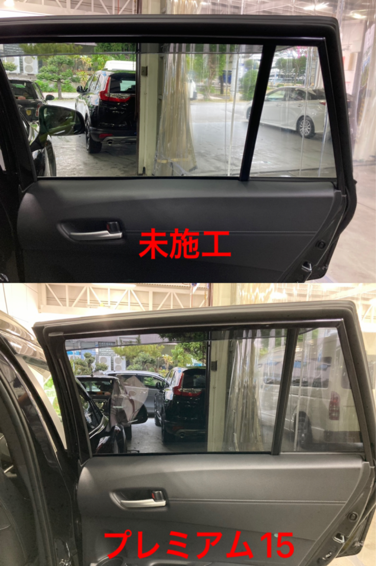 元々純正プライバシーガラスにはガラスに色が入っておりますが、もっと濃い色にしたい方はプレミアムスモーク8