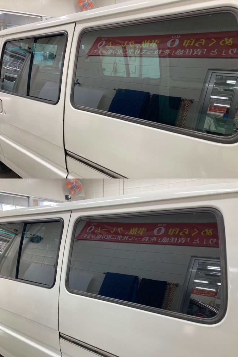 ボンゴでは元々ガラス事態に色が入っておりますが、純正プライバシーガラスより濃色のフィルムとなります。