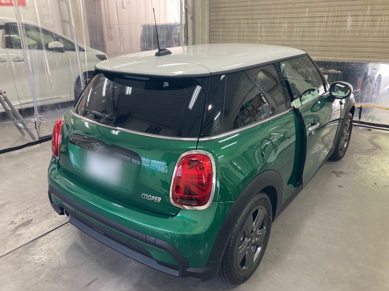 本日フィルムの作業で入庫した車両はミニ クーパーです。フィルムはプレミアムスモーク30を施工させていただきました。
