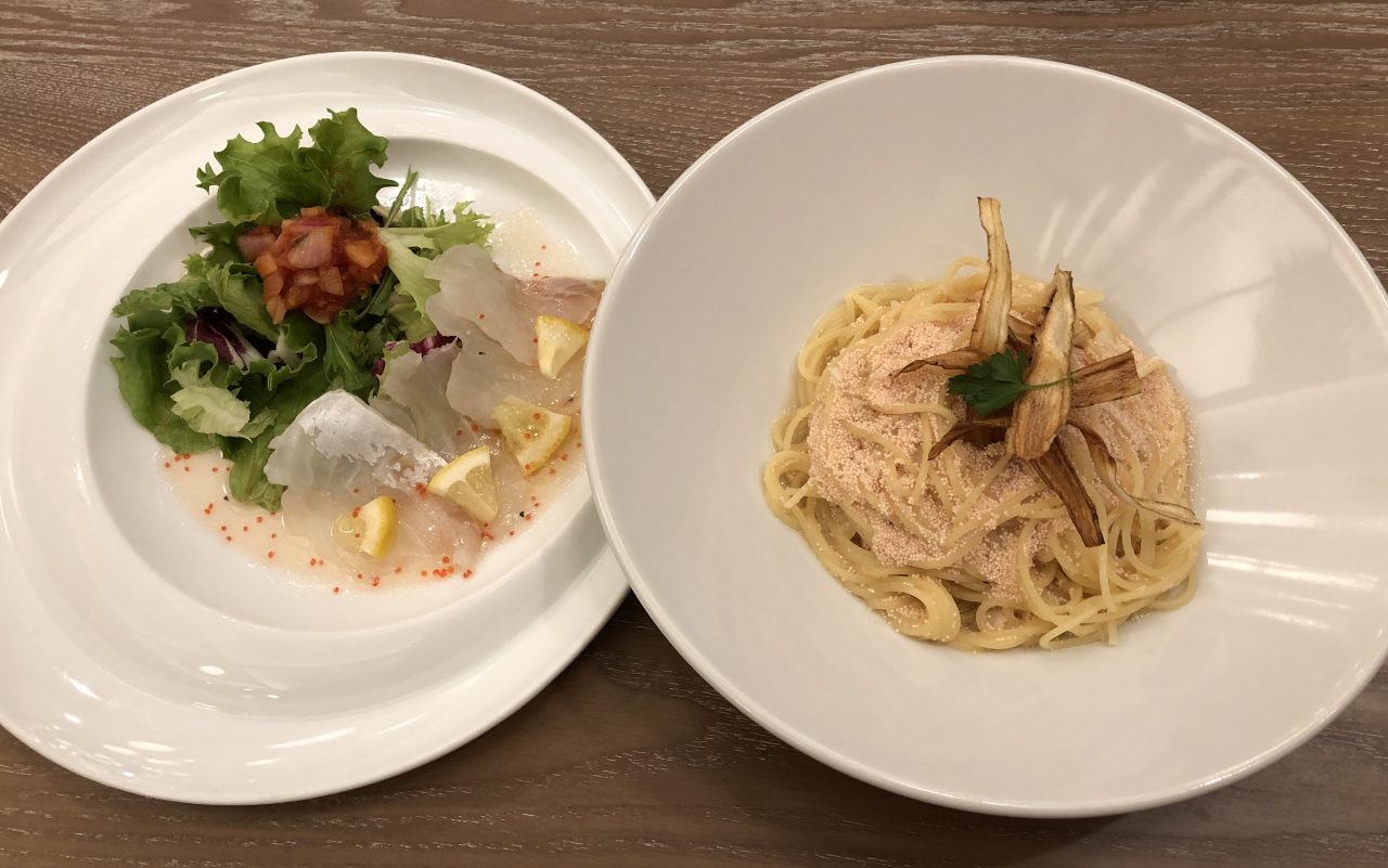本日のカルパッチョ サラダ仕立て & 明太子パスタ