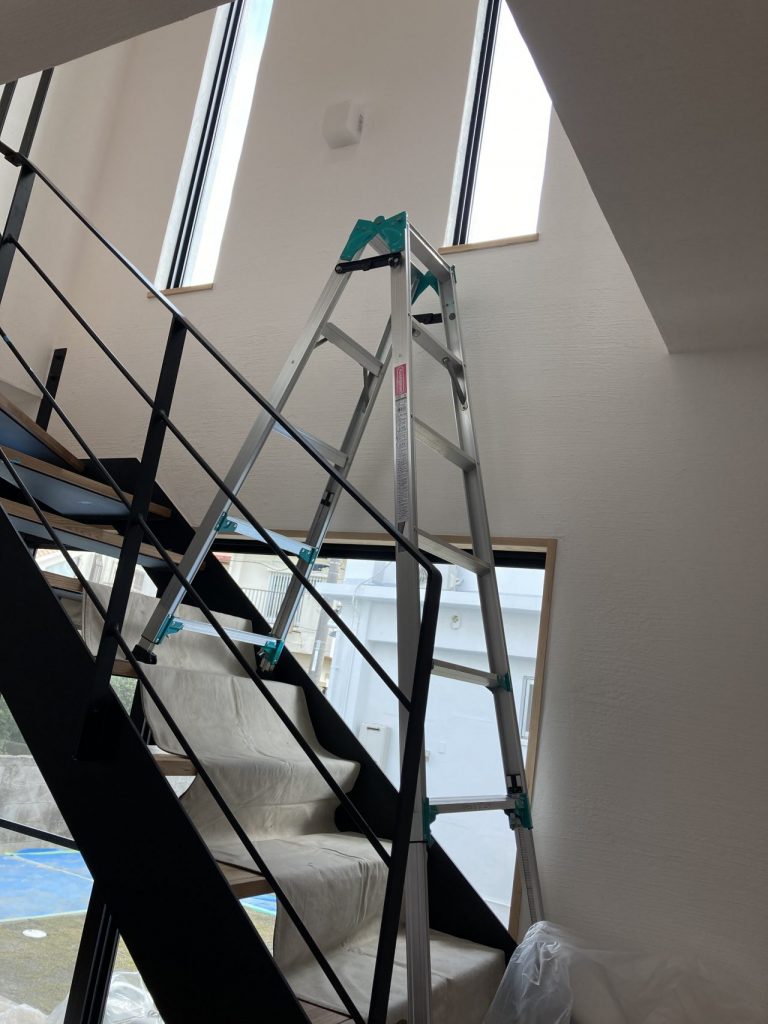 通常の脚立では施工が難しいので、アジャスト式脚立を使用!