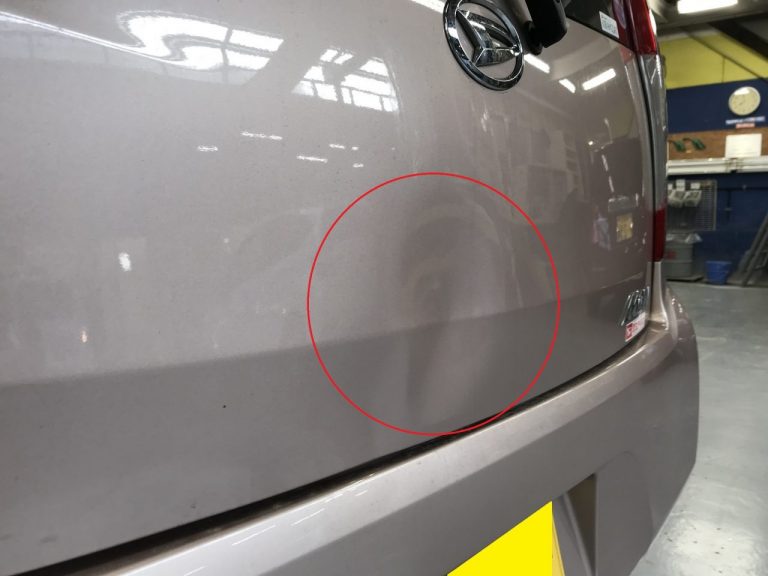 今回の入庫はダイハツムーブのバックドアヘコミ補修です。