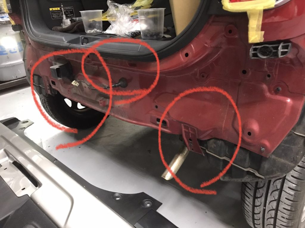 今回入庫した赤いクルマ、よく傷つく部分ではありますが、、、