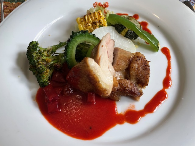やわらかい鶏肉をビーツのソースでいただきました