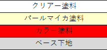 基本この3種類に大きく分かれますが、ほかにも自己修復型クリアー、ソウルレッド、マット塗装、マジョーラ塗装様々な塗料もあります。