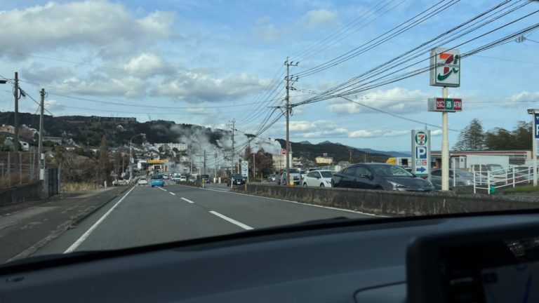 温泉街なので、街中を走っているといたるところで蒸気が上がっていて硫黄の匂い”(-“”-)”