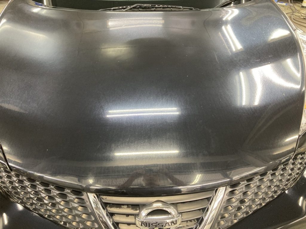 本日、新規コーティングで入庫していただいた車両ですがボンネットにシミが多くありかなりくもっています。
