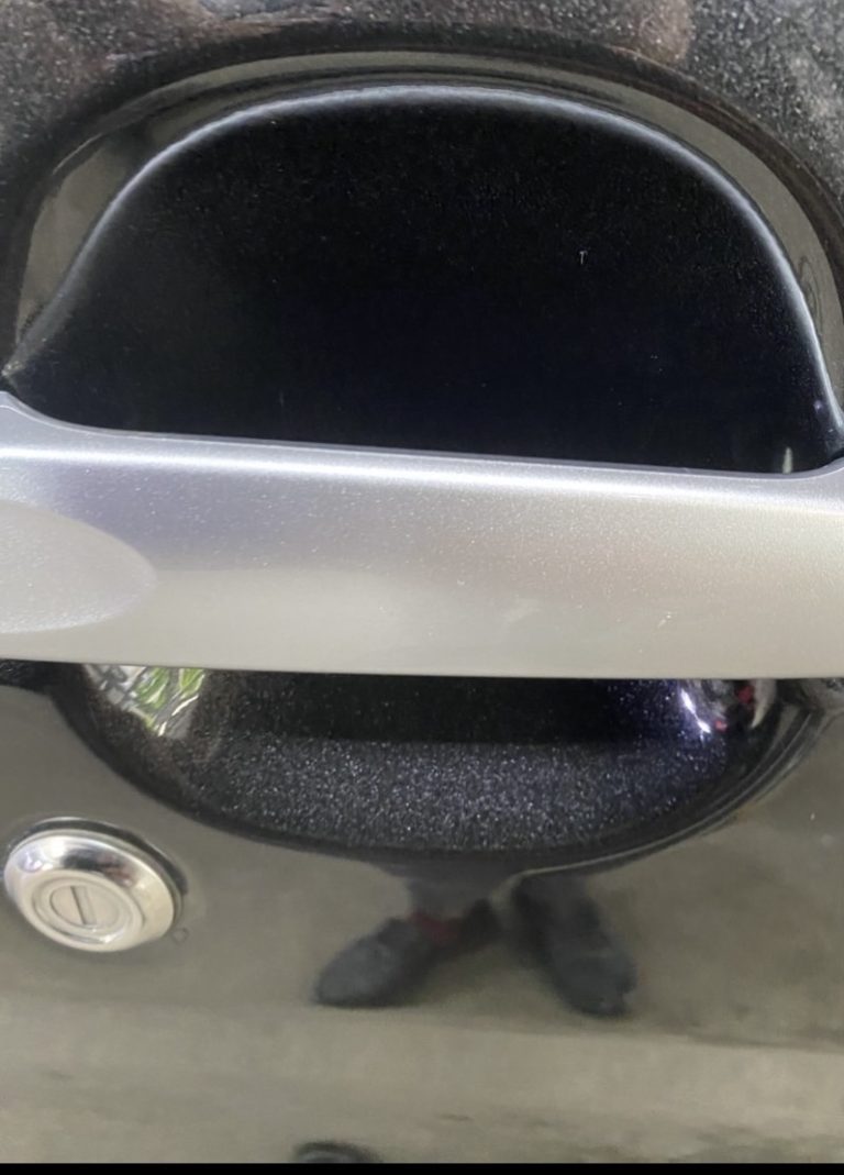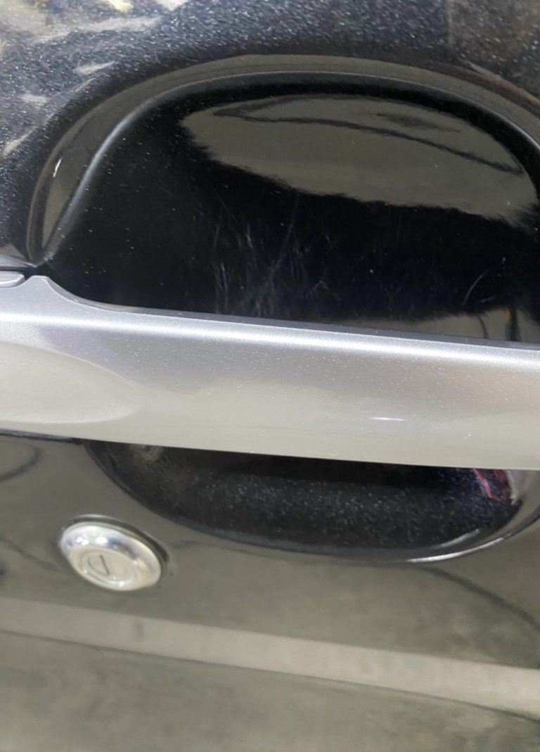通常は内側からフィルムの貼り付けですが、型ガラスで内側デコボコで貼り付けが出来ない為、外面からの貼り付けとなります。