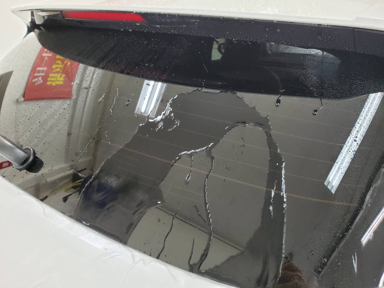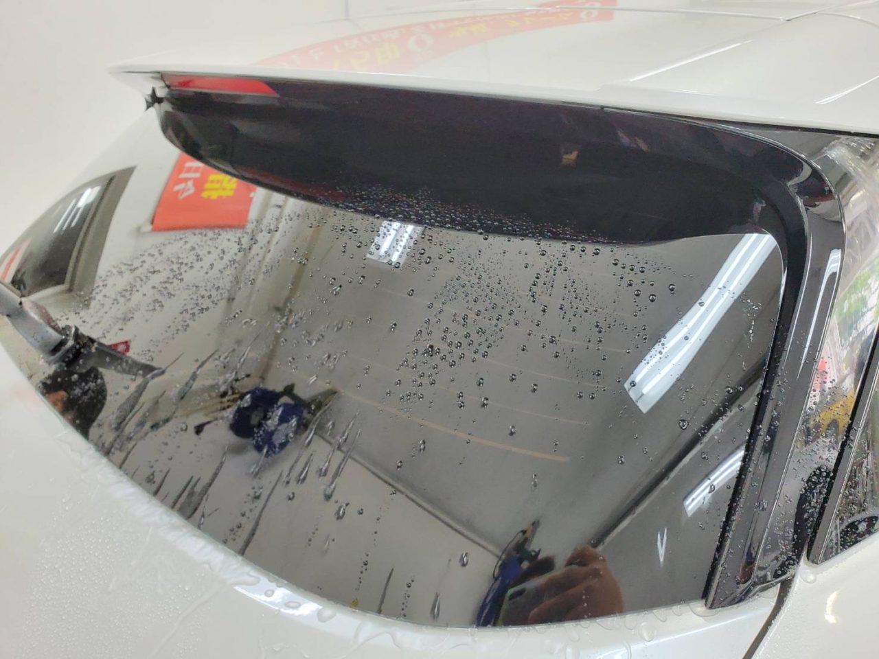 水分をこまめに取りながらフィルム貼り付け作業致しました。