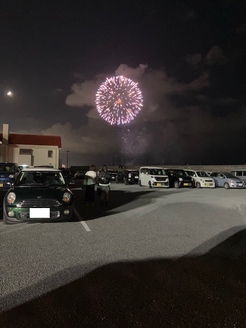 食事の後は駐車場から花火を見て、家族で贅沢・大満足な時間を過ごしました。