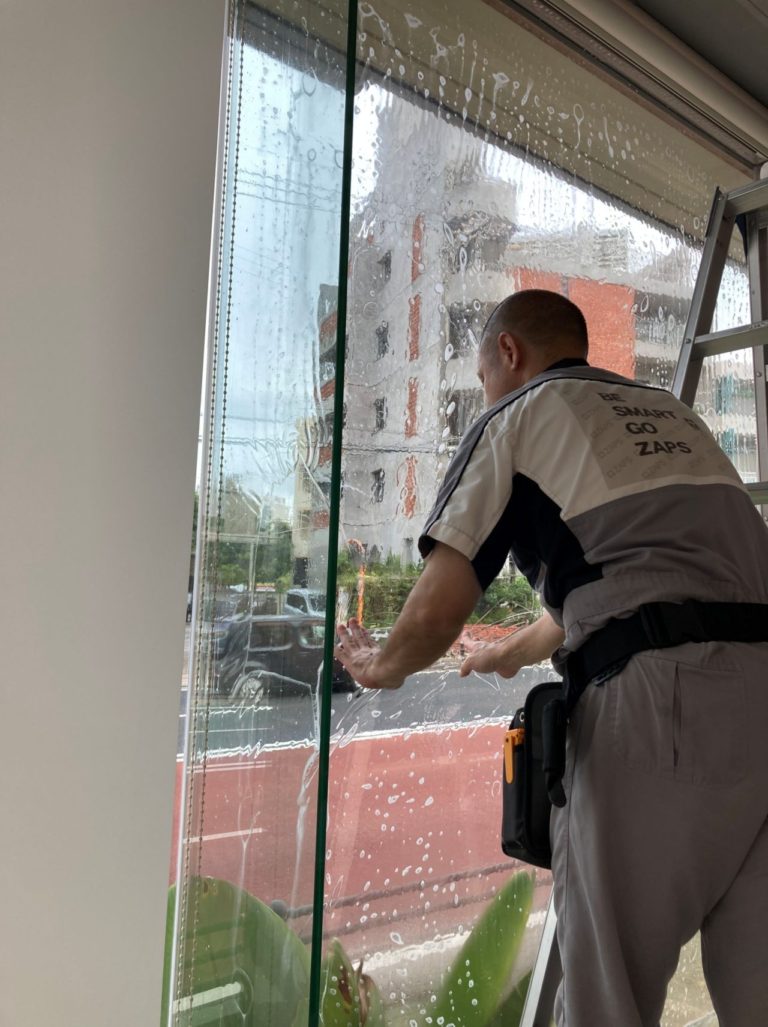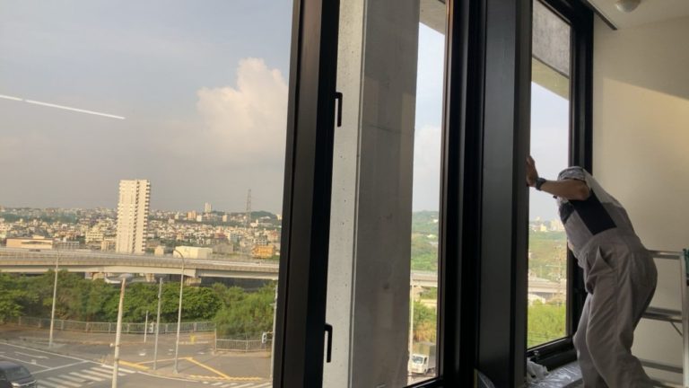 窓ガラス高さが2m近くあり脚立を使用しながら貼り付け作業
