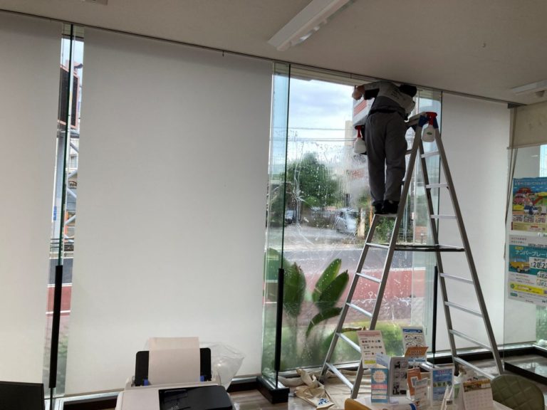 某ディラーでのショールーム暑さ対策として窓ガラスのフィルム貼り付けを行いました。