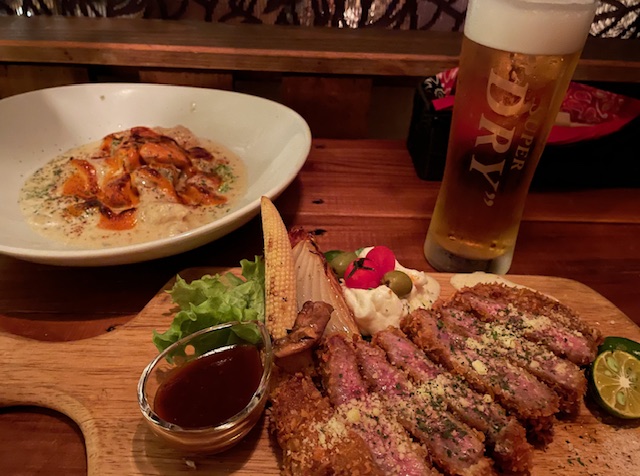 白身とホタテの炙りウニソースにサーロインカツレツを注文しましたが