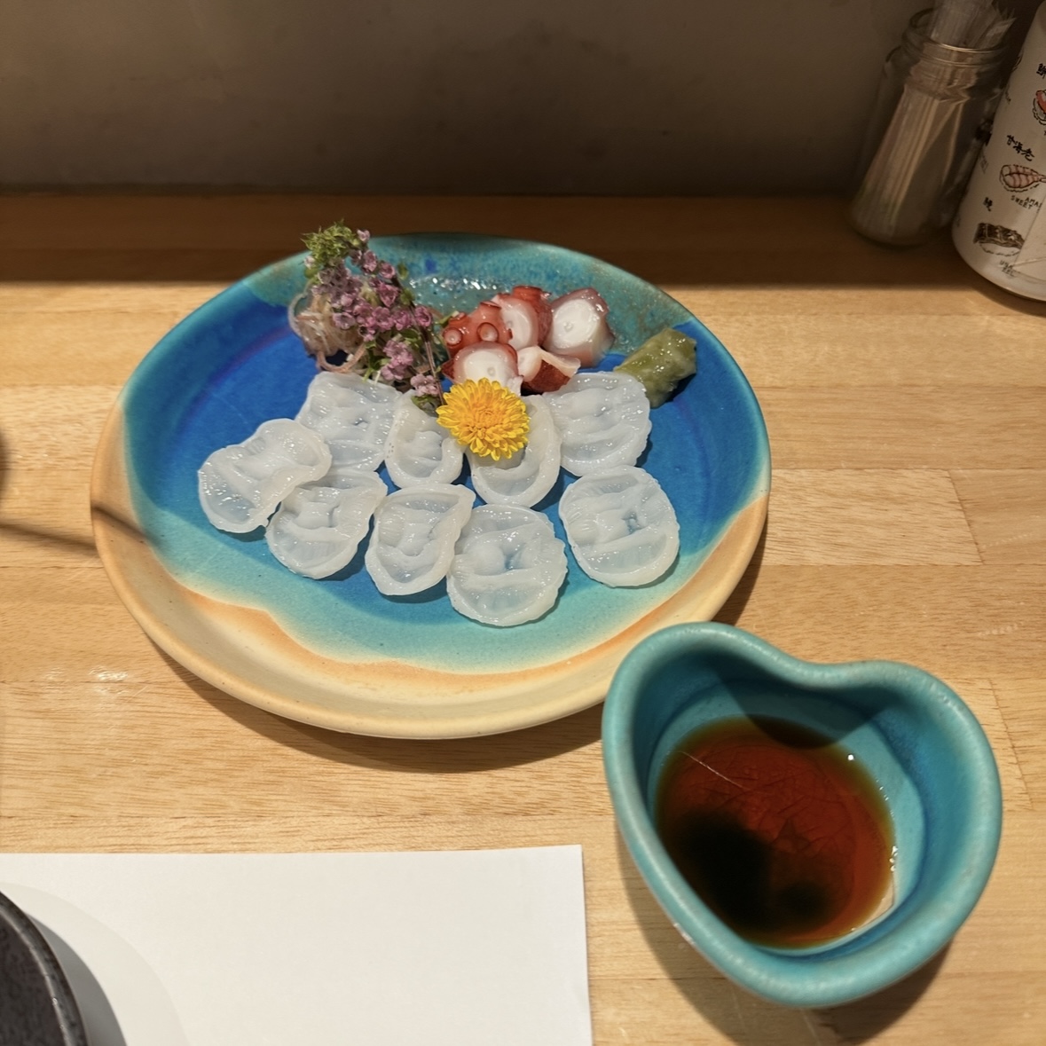 そしてこちらは初めて注文してみた『水ダコと刻みワサビのタコワサ』と『肉厚トロホッケ炭火焼き』🐟