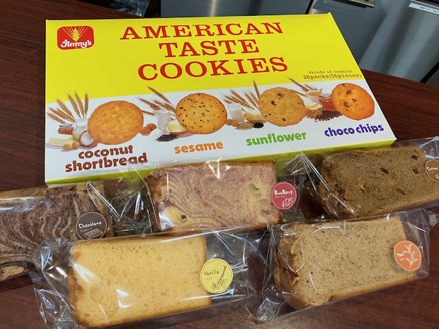 沖縄県民の大好きなジミーのクッキーやシフォンケーキをいただきました。