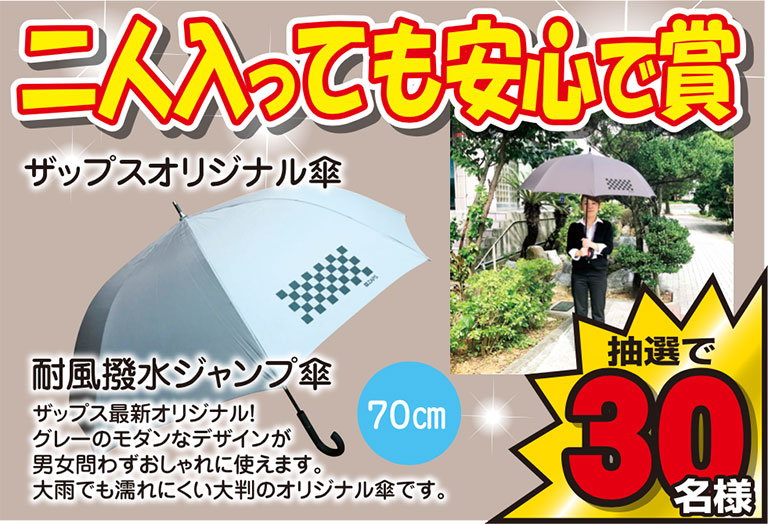 ザップスオリジナル、耐風撥水ジャンプ傘。ザップス最新オリジナル!
