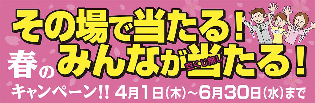 その場で当たる!空くじなしでみんなが当たる!!今回も選りすぐりの賞品をご用意しています。