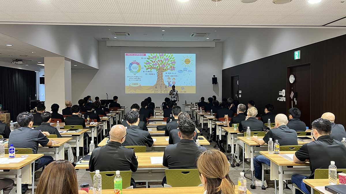 2024年7月24日(水) P’s SQUAREにて、株式会社ケイ・エム、琉球タフコート株式会社、株式会社ザップスのグループ会社3社で合同経営方針発表会を行いました。