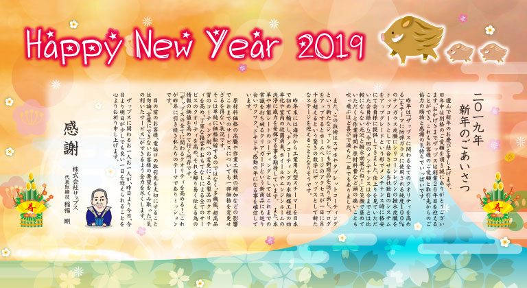 2019年 新年のごあいさつ 謹んで新年のお慶びを申し上げます。 旧年中は別格のご愛顧を頂き誠にあり…