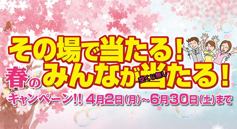 春キャンペーン始まりました!! その場で当たる!空くじなしでみんなが当たる!!今回も選りすぐりの賞品をご用意してい…