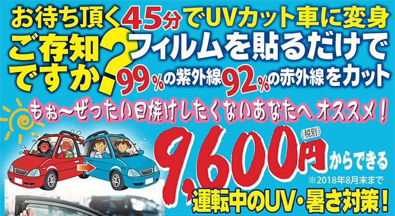 フィルムを貼るだけで99%の紫外線92%の赤外線をカット!日焼けしたくないあなたへオススメ!!