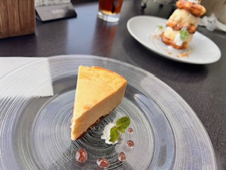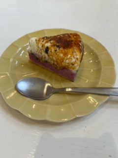 最後のデザートには、紅芋の『水信玄餅』とほうじ茶がでてきました♪