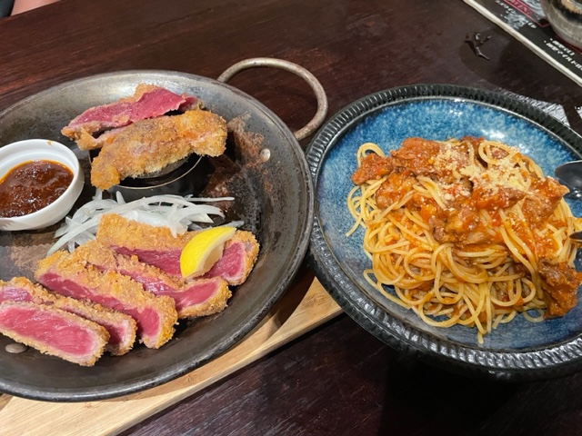 白身とホタテの炙りウニソースにサーロインカツレツを注文しましたが