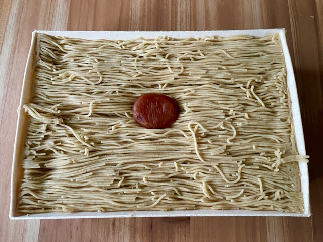 中身は細いモンブランがおそうめんみたいで、真ん中の栗が梅干しチックですよね